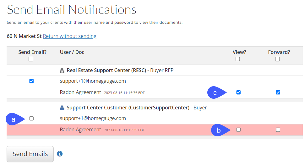 - Check the View? and Forward? permissions for Radon agreements that the REP will need to download and send to the seller.