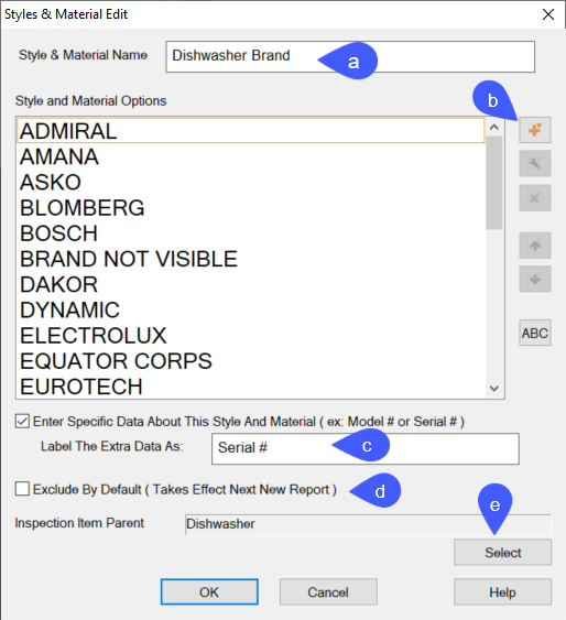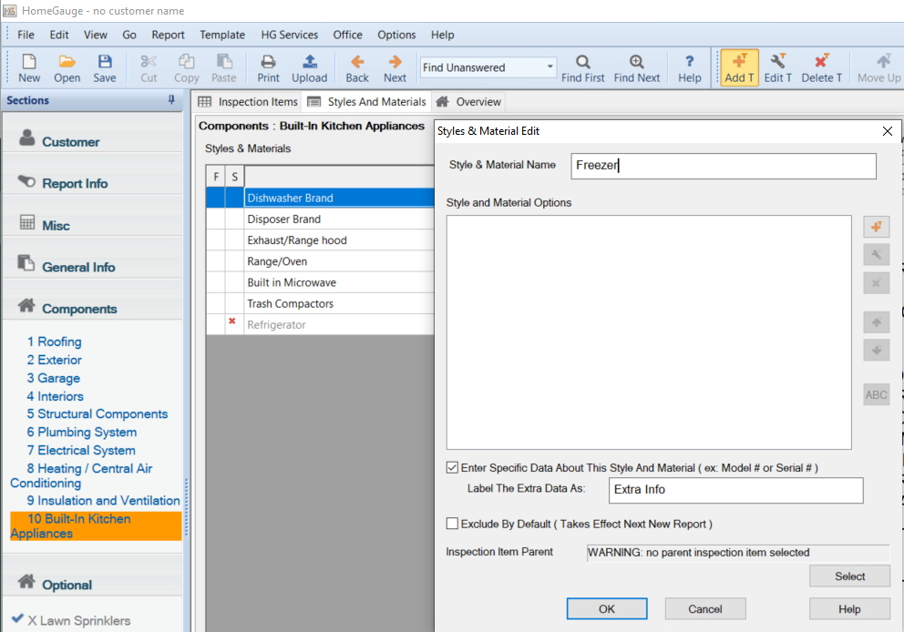 You can add, edit, or delete Style & Material items and their options to tailor your reports to your specific needs. Here's a step-by-step guide on how to perform these actions: