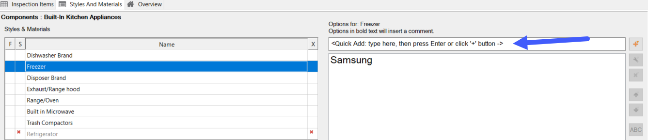 You can also add, edit or delete Material Options while editing Styles & Materials. This takes longer than using the quick option.