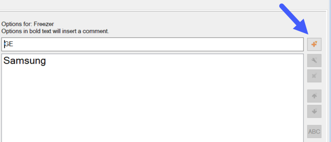- TO EDIT, click to highlight the option you would like to edit, then click the wrench icon to the right. Make changes, then click OK.