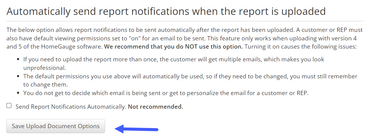 - If a report needs to be uploaded more than once, customers may receive multiple emails, impacting your professional image.