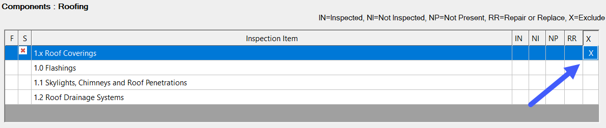 - Click the box in the "X" or "Exclude" column for the items you want to exclude:
