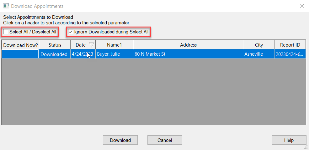 Downloading Reports from the Cloud window has also been updated with the Select All/Deselect All option. We added a “Status” column to show if a report was downloaded. Your choice for the checkbox will be saved separately for the appointment and report download windows.