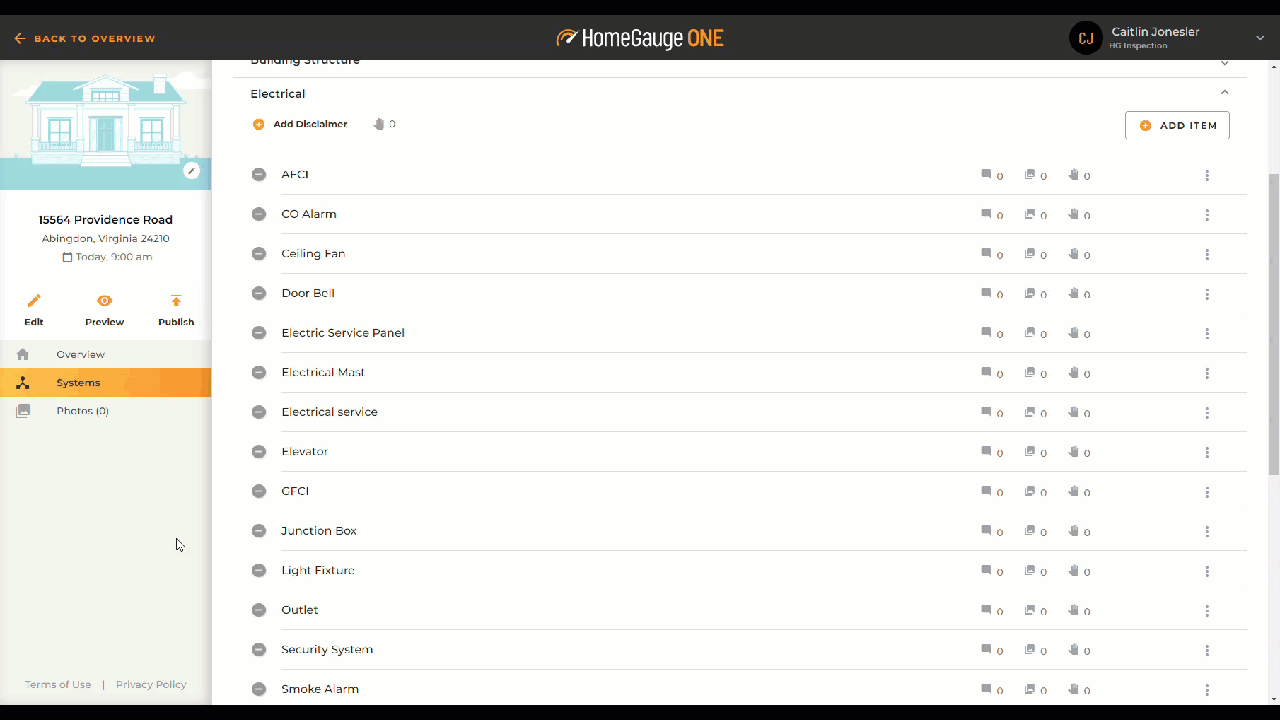 Inspection items with a status of N/A are now hidden from the published report. Currently, this only applies to the individual items and not to the entire section. If you would like to remove an entire system, you will need to delete all the items in the system.