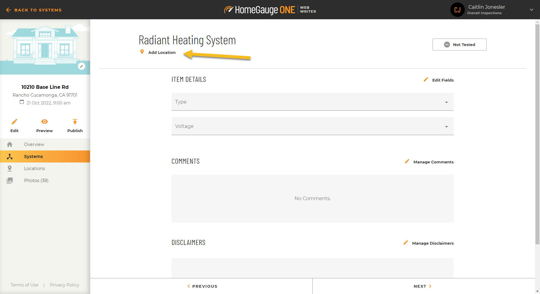 Based on inspector feedback, you can create custom item locations or rename item locations within an inspection without having to incorporate the previous location name. We plan on altering the behavior in your Template soon.